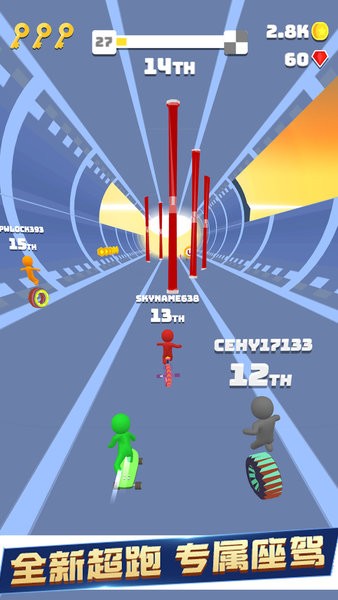 3、获得冠军解锁下一条赛道,赚取红宝石,并戴上王冠,与多达11个对手竞争。
