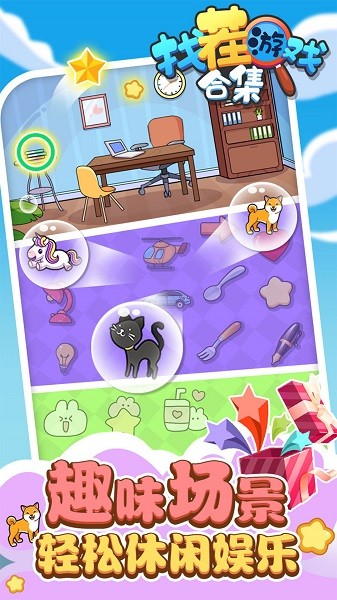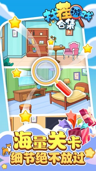 这个游戏合集看起来挺有意思的,里面有很多种找茬玩法,像“找你妹”、“双人对决”这些听起来就很有挑战性。玩家可以体验到不同的模式,比如有些是家装照片,有些是风景照,感觉场景还挺丰富的。