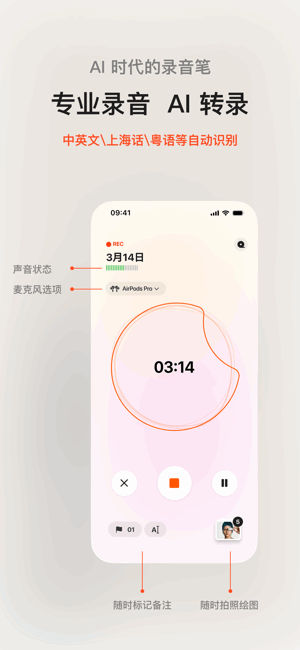 -- 离线支持,完全原生iOS应用,没有网络也可以记录查看回听,等有网络再转换内容