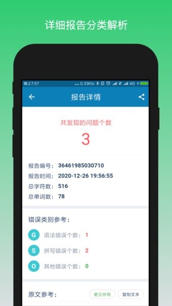 智能检测,专业的美英英语水准,检测出你的文本里的每个问题并及时纠正