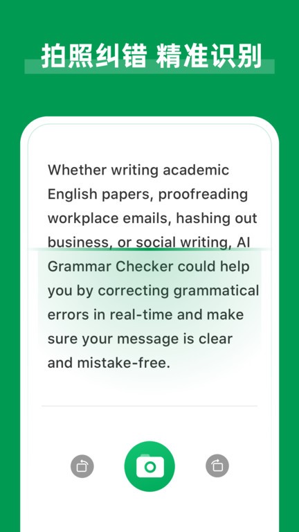 ai grammar软件手机版作为英语语法纠错软件,可以帮助英语学习者迅速纠正错误语法,并且会有详细的纠错解析,让用户可以知道自己到底错在哪里,支持通过拍照上传的方式来智能纠错,精准快速,让用户可以在写作的时候更上一层楼!