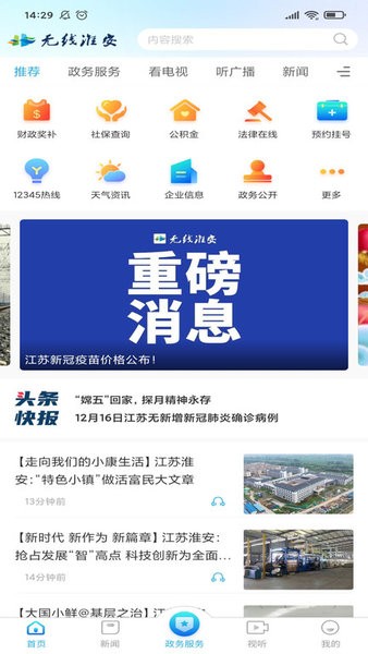 无线淮安电视台app让淮安市民可以在手机上享受到诸多方便。首先,它提供了淮安地区的各种新闻,已经国内外的新闻资讯;其次,提供了很多便民服务功能,包括公交查询、违章查询、生活缴费等;最后,通无线淮安还可以办理政务事宜。