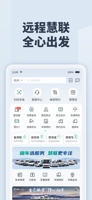 “远程慧联APP”是绿色慧联为服务用户而开发的移动客户端,用户可以通过app获得找桩充电、线上租车购车、违章查询、维保查询、年审查询、车况查询等服务。