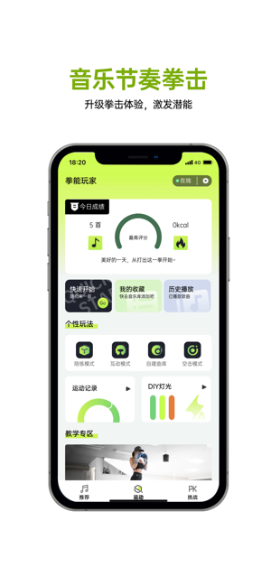 拳能玩家音乐拳击机app是连接音乐拳击机设备使用的健身运动软件,带来趣味玩法内容,多种模式选择,一键登录,即可开练,体感互动,自动计数得分,音乐节奏全集,升拳体验,激发潜能,击打数据实时监测记录,激励运动,获取高分!