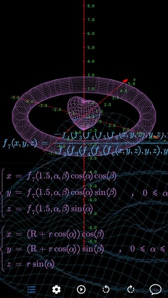 数以兴焉app官方最新版能够生成图像,支持3D爱心函数公式,可以便捷的进行公式的编辑,能够展示变幻动画,绘制函数图像非常的方便,支持同时绘制多个函数曲线图,,可以自由的编辑和调整参数,图像也会跟着参数随之改变。