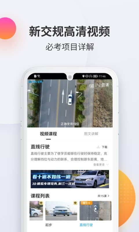 2、科目三3D模拟练车:新的练车模式,模拟真实考试场景,手机看点位,随时随地练车,驾驶证考试顺利通过;