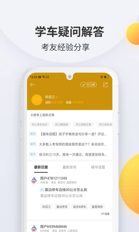 4、科三社区:和全国学员一起吐槽、晒照、聊天,学车不再孤单!