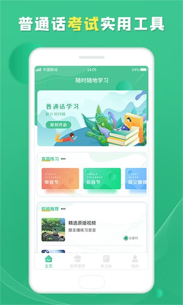 通过智能跟读单音节、多音节、短文朗读,发音练习四种题型反复理解、记忆内容,提升学习者普通话的听力、理解力与应用能力