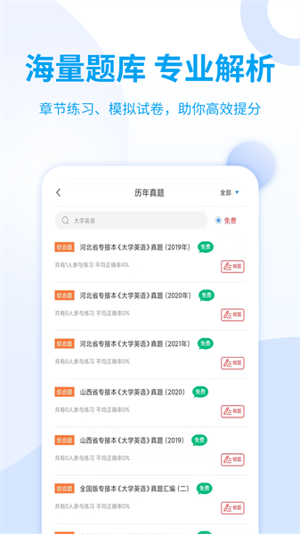 历年真题、模拟题库、实战演练、智能分析、深度讲解、强化薄弱点,培养最高效的实战能力,轻松“刷”上本科。