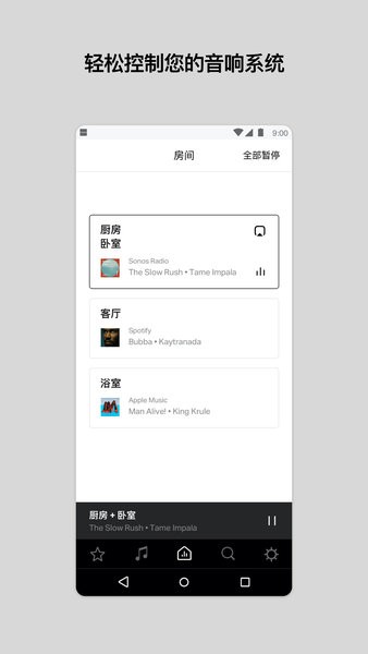 sonos安卓app最新版是sonos音箱的配套手机控制软件,主要适用于sonos s1系列。有了它,手机就可以变为音箱遥控器,支持调节声音大小、切歌等,还可以给音箱设置闹钟;软件里面还附带了大量的电台和广播内容,欢迎收听。