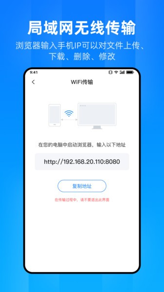方式一: Wi-Fi传输 (手机电脑连接同一Wi-Fi,输入网址后,一键导入)