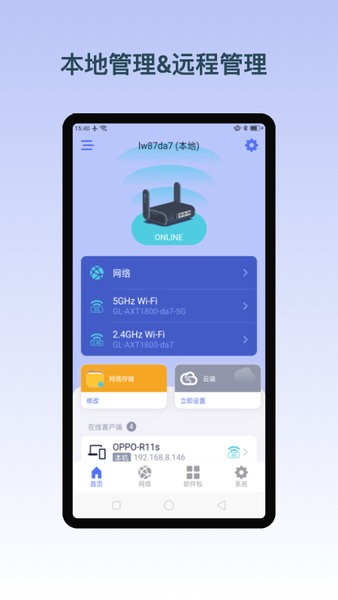 glinet路由器官方版是一款提供路由器管理的应用工具,支持本地管理、远程管理,还支持多种方式连接到互联网,轻松安装路由器,快速设置网络,了解网络设备信息,管理并分享您tf卡或usb存储设备中的文件,轻松操作,简单易上手!