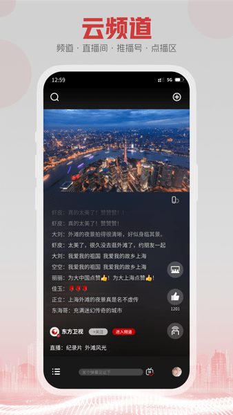 “5G云TV”是东方有线在SMG、OPG指导下,联合百视通依托中国广电5G大平台的新网络优势,积极促进台网融合,持续推进广电内容供给侧创新推出的产品。“5G云TV”通过手机端和电视大屏端的大小屏联动,为用户提供视听互动社交融合服务,全面升级广电5G与电视服务体验。