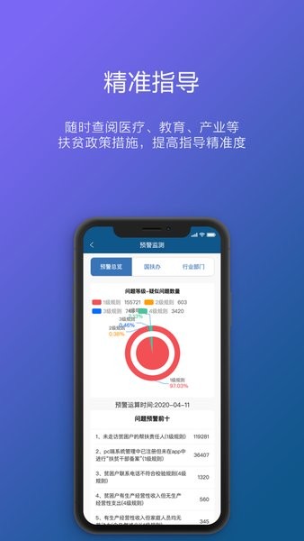 它还有一些特别的功能,比如线上申报扶贫可以为需要帮助的人申请帮扶;实时推送最新的政策法规和扶贫计划;随时更新贫困人员信息和村貌档案等。此外,App还利用大数据分析和人工研判,精准推送帮扶政策给相关干部,确保帮扶措施落实到位。