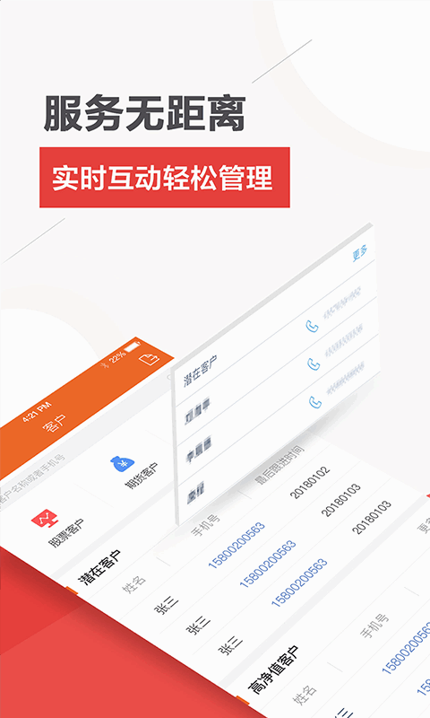 一键导入通讯录好友到潜在客户列表,全面支持证券经纪人、投资顾问等对客户进行分类及动态管理。客户信息全景视图,自动跟踪客户生日、账户动态等,关键时刻不再错过。