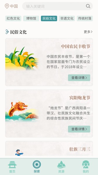 文化广西官方版是针对广西提供当地历史民俗传统优秀文化介绍学习的应用软件,包括红色文化、博物馆、民俗文化、非遗文化、传统村落等,随时查看详情,带你走进广西,浏览民间艺术,了解广西背后的故事,体验传统文化的魅力与传承!