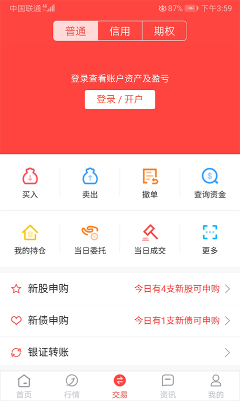 委托买入卖出撤单分区,普通两融一键切换,操作简便;