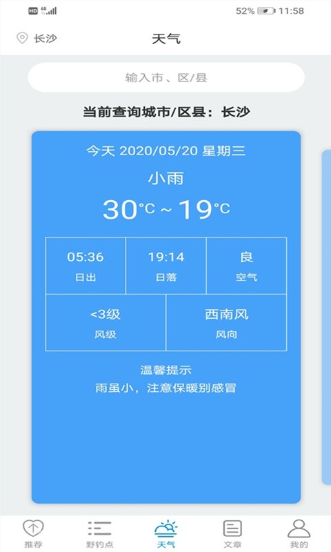 查天气:预知全国各城市天气预报,方便制定你的出钓计划;
