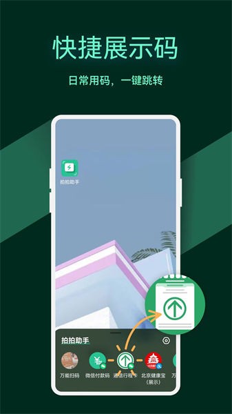 支持健康码、支付码、公交地铁码、个人名片码的快捷展示,让展示码的出示1秒完成