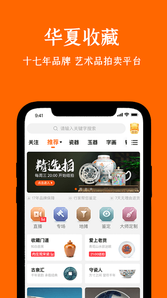 华夏收藏专注于古玩艺术品收藏行业18年,为广大古玩、文玩、艺术品等玩家搭建的集网站、手机、微信小程序、微信朋友圈等一体的交易交流平台。我们从保护收藏人与收藏品出发,努力推动收藏品交易市场的健康透明有序,践行弘扬华夏收藏文化的企业使命,已经成为具备鉴定估价、交易、直播、拍卖、修复、交流、资讯百科等全方位功能的专业平台。