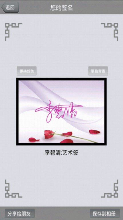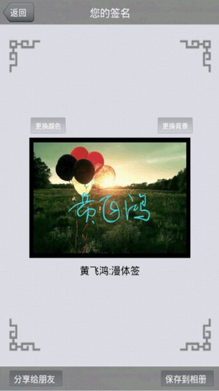 艺术签名手机版是一款免费的个性签名设计工具,完全免费、无需联网、清爽界面、简体繁体全支持! 内含多种流行签名字体、颜色、背景选择,让你随时随地制作你喜欢的艺术签名。