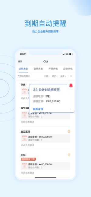提醒业务人员即将到期的应收/付账款以及逾期的应收/付账款