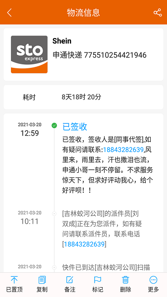 输入备注也能识别历史快递记录