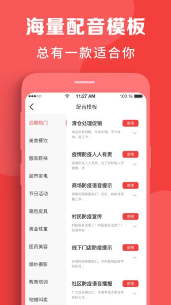 配音文字转语音一款文字转语音的专业配音软件,只需要输入文字就可以把文字转成语音,适用于商场店铺广告促销配音、地摊叫卖录音制作、英语听力音频制作、有声朗读等多种场景配音。在线文字转语音,各种配音主播任你挑选,支持调节音量、语速和音调,还能添加背景音乐,免费提供海量配音模板。