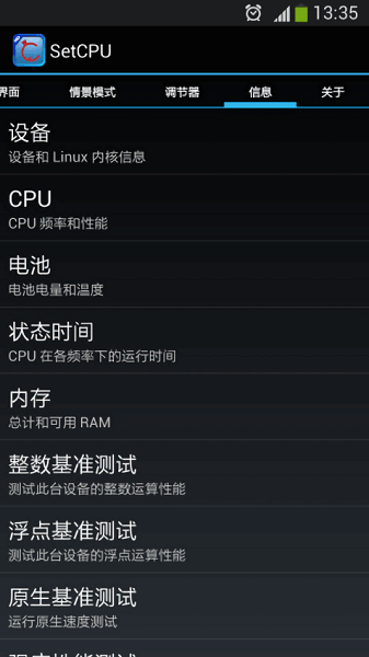 12.包含丰富的情景模式设置,用户可以根据设备和系统的条件来配置相应的CPU频率调节器,从而达到优化性能和省电的目的