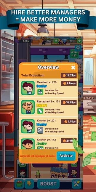 放松并享受闲置游戏,或积极管理您的餐厅以获得最佳收益。