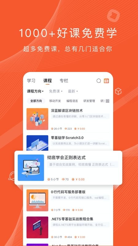 编程之路漫长,加入我们,千万开发者与你同行!实用性极高的学习类app,涵盖大量的程序员知识供大家选择。清晰的页面布局用户查找起来也更加方便。各类优质课程实时更新从多个方面去满足大家的学习需求,移动便捷式服务随时想学就学!
