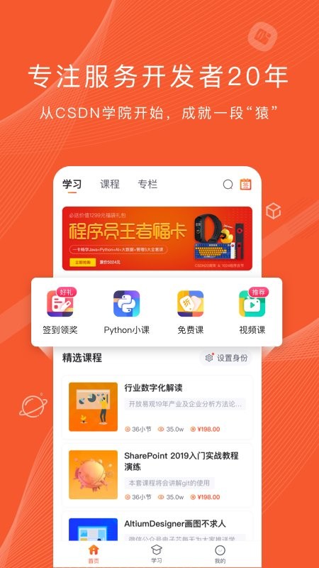 csdn程序员研修院app是专门为程序员们设计的专业课程学习app,不管你现在处于哪个阶段都可以获得最佳的学习服务,在程序这个无止尽的道路上自由的探索!