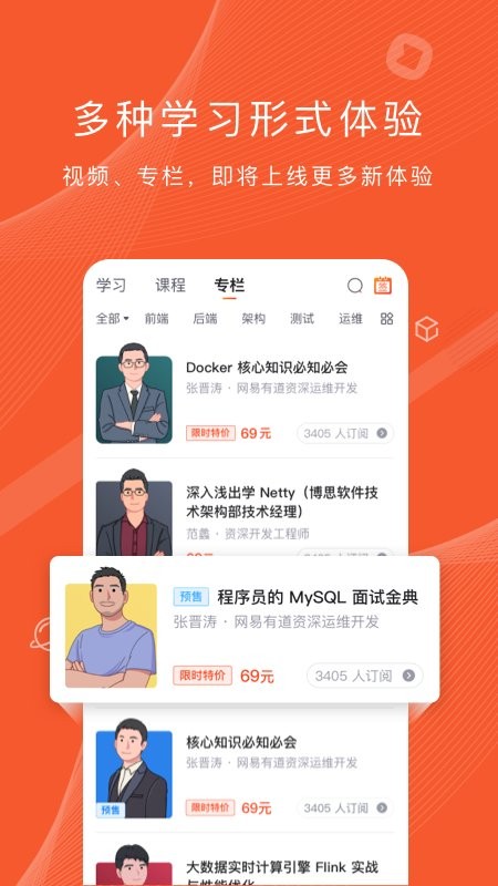 包含 python 、 java 、云计算/大数据、 web 开发、游戏开发、软件研发、系统/网络…… 应有尽有,万门精品课程,覆盖全领域的技术知识。全方位名师指导,从入门到精通,手把手教你各类技术硬技能!