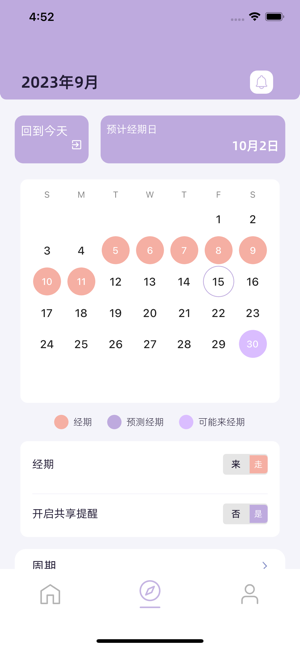 依据经期纪录,测算预测分析月经安全期、下一个月生理期时间段,准备充分;