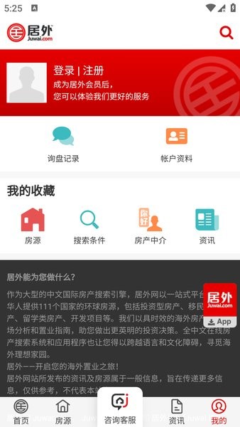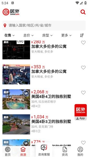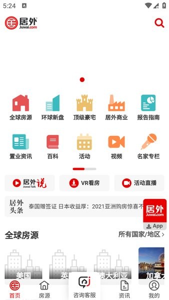 居外网官方版是提供海外房源服务的应用软件,实时更新房地产新闻资讯,提供投资指南、留学指南、移民指南等服务,汇聚环球房源项目,不同房源信息随你浏览查看,带来环球新盘、顶级豪宅、居外商业、百科、活动等贴心服务,海外置业更加简单!
