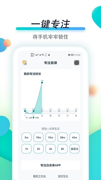 你是否有过这样的体验,一玩手机就停不下来,一眨眼就过了几个小时?现在,解决的方法来了。专注自律app帮助您不做手机控,专注于学习和工作,不被游戏和短视频干扰。软件采用强制锁住手机的方式来控制你的手机使用时长,无论是手机还是其中的某个app,你都可以随心所欲的控制它的使用时间。