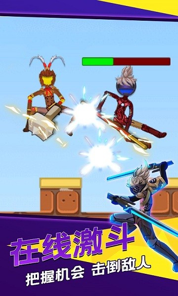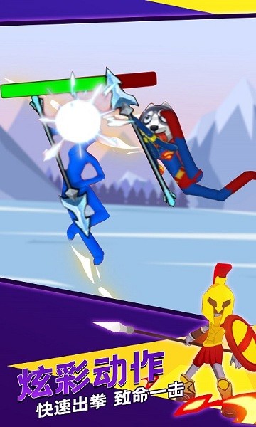 《火柴人世界战争》是一款好玩的火柴人动作格斗游戏。好斗的火柴人们一定要通过一场比武来确定谁是王者。游戏操作非常简单,通过虚拟摇杆控制火柴人的移动,通过灵活的移动争取有利的攻击位置将敌人击败。