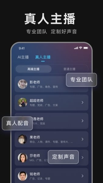 配音助手是一款文字转语音的音频制作软件,包括:智能主播配音、真人配音、录音,支持任意文本内容的便捷配音软件。适用于短视频配音、有声朗读、宣传片配音、节日特卖、美食餐饮,超市烟酒、家电卖场、广播播音、课件ppt等多种场景,让您轻松配出好声音。
