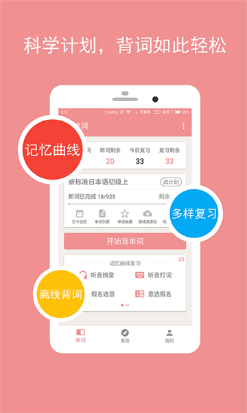 零基础快速入门学日语。强大的日语五十音图功能,让初学者轻松入门。灵活的记忆曲线背词方式,让背单词更加高效。更有多种日语学习工具,让学日语变得简单。