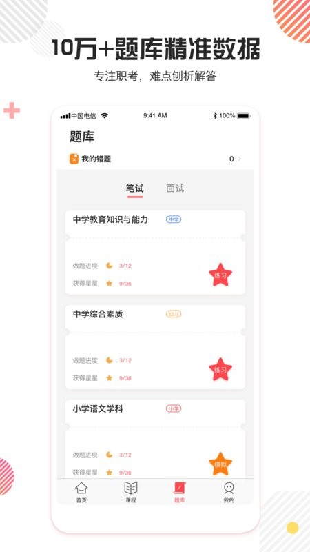 覆盖教师资格证、教师招聘各学段考试科目,闯关刷题攻克考点,笔试面试,科学高效备考教师资格证,从容面对教师招聘!