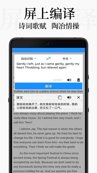 支持自动识别,多种语言,诗词,文言文,互译