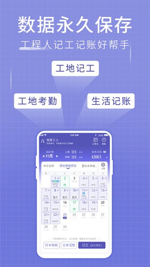 工地便捷记工:工地记工天、记工时、记加班,记工内容都很详细,点工包工都能使用;
