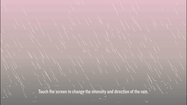 Just Rain 能够帮助您放松身心,带给您身临其境的雨天视听体验。从和风细雨到倾盆大雨,通过简单的手指滑动,即可调节出多样的雨声。Just Rain 还具有立体声声效和丰富的雨滴视觉模拟。用它来放松,冥想,帮助专注于学习,或者辅助睡眠。