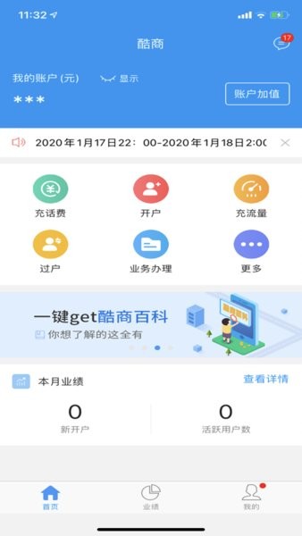 中兴酷商平台app是专为通信行业打造的一站式服务平台,功能很强大,支持充话费、开户、充流量、过户、业务办理等;可以详细看到每个月的业绩数据,并支持对业务数据进行统计和分析,弥补不足的地方。