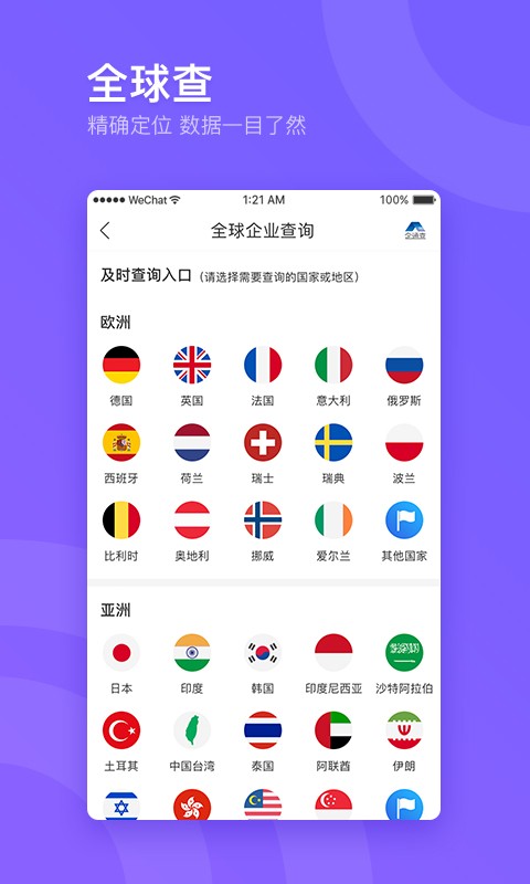 企业数据中心海外数据全面盖五大洲240+国家,超过2亿+海外企业的信用、财务、金融和商业信息,并与各国数据源信息实时同步。