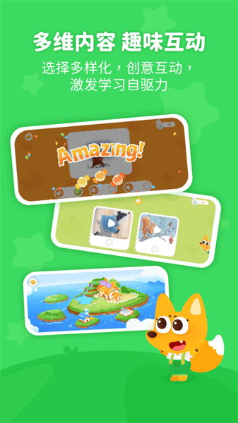3.多维内容有趣互动,以多样化的选择和创造性的互动激发学习的自我动力;