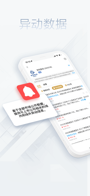 提供跨市场主体(包括上市公司、金融机构、人物、基金产品)的多维度监控,为你实时推送自己关注的企业动态、人物变化、金融产品更新等信息。不再需要打开众多app反复搜索查看。