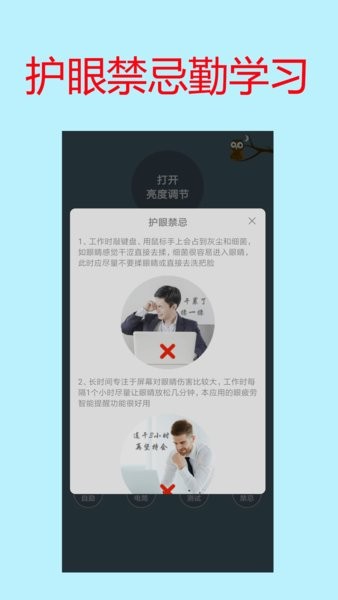 有效的帮助用户保护视力、缓解眼睛疲劳、解答各种疑惑,恢复眼睛健康。可定时自动提醒,杜绝眼睛过度疲劳,做到眼睛的全方位护理。
