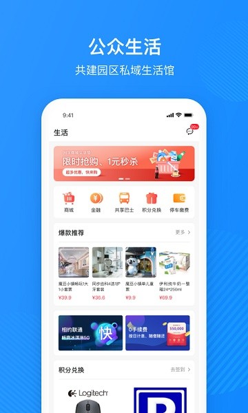 3、面向园区公众,提供商城购物、积分兑换、金融服务等多项服务,丰富园区人文社区建设;