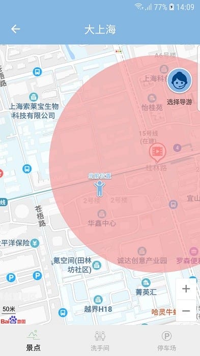 4、点击查看景点的地图,选择查看停车场或者洗手间的位置等